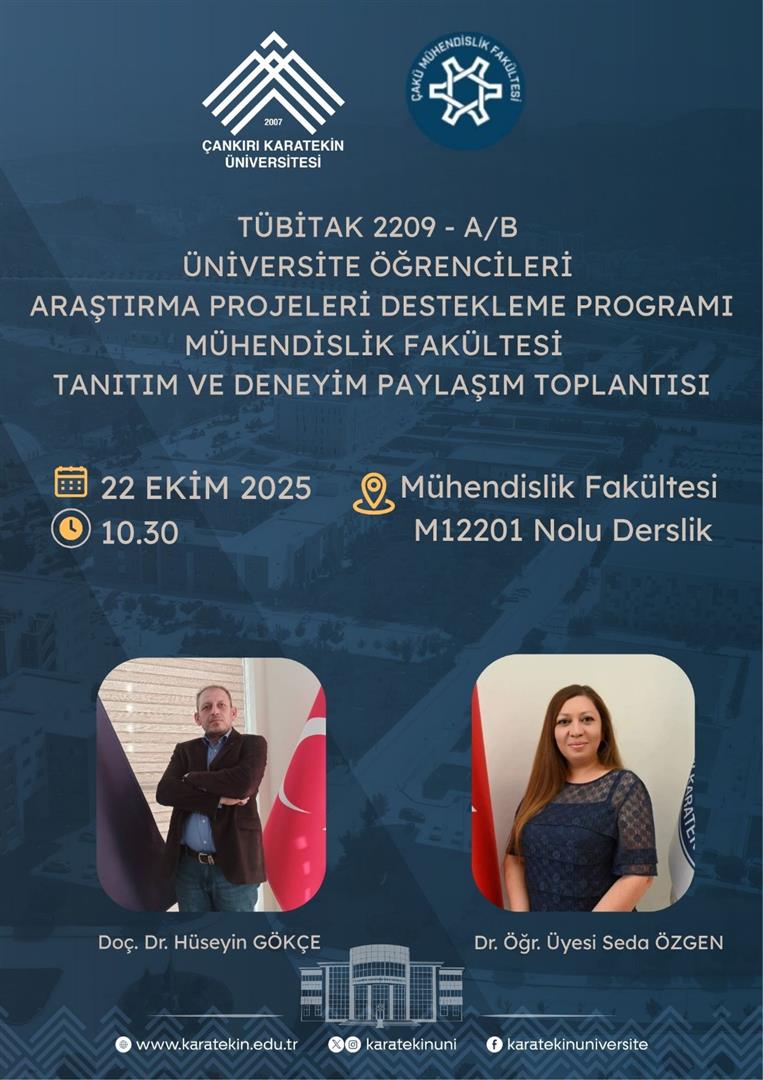 Fakültemiz öğretim üyeleri tarafından 22 Ekim 2025 Çarşamba günü saat 10.30’da TÜBİTAK 2209-A/B tanıtım toplantısı gerçekleştirilecektir. Öğrencilerimizin katılımları beklenmektedir.